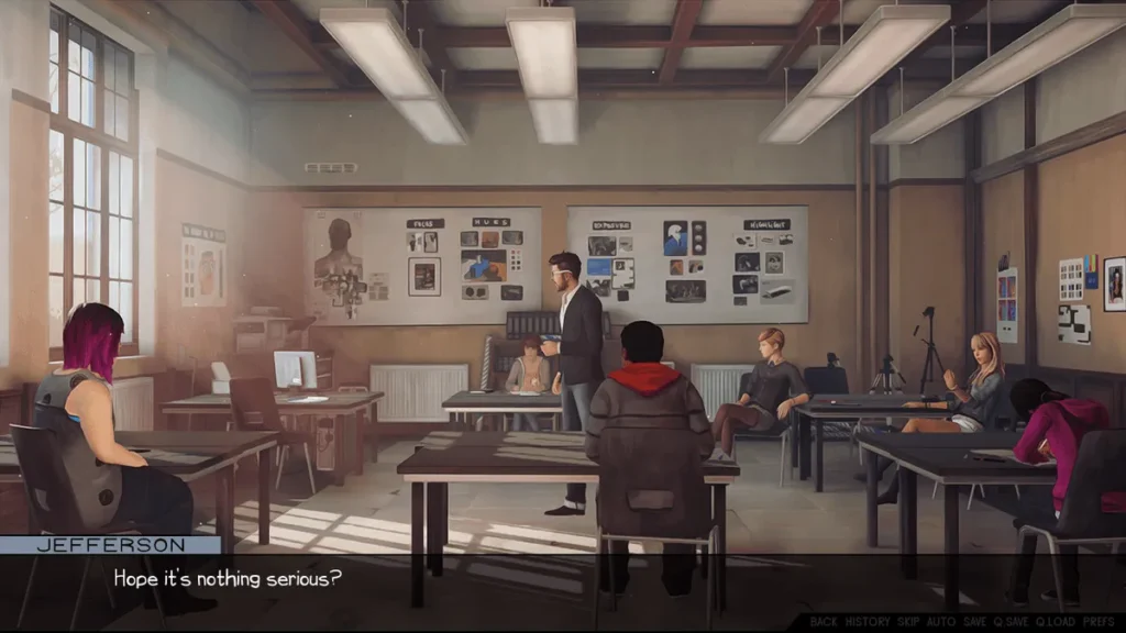 The genius of this Life Is Strange fan game is its setting. It doesn’t try to rehash the storm or re-tell Max’s tale. Instead, it plants you firmly in the uncomfortable silence that follows chaos. The main narrative kicks off with Jefferson detained, being questioned by investigators trying to untangle the full web of events at Blackwell. 🕵️♂️
